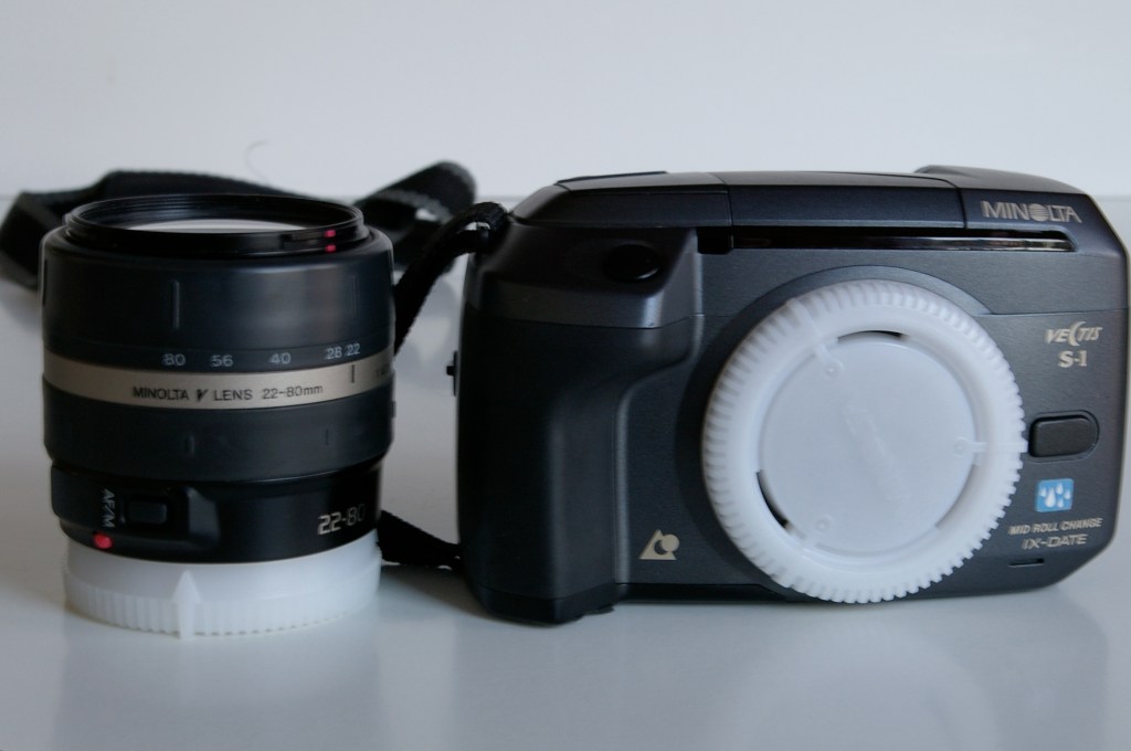 On the contrary, Minolta took the risk of making the Vectis S-1 totally incompatible with its own 35mm lens system – and opted for a shorter focal flange distance (38mm) and for a smaller mount diameter, without any mechanical linkage between the camera body and the lens. The body and the lens could be made much smaller, but Minolta had to develop a whole range of new lenses, and ended up supporting two totally incompatible product lines.