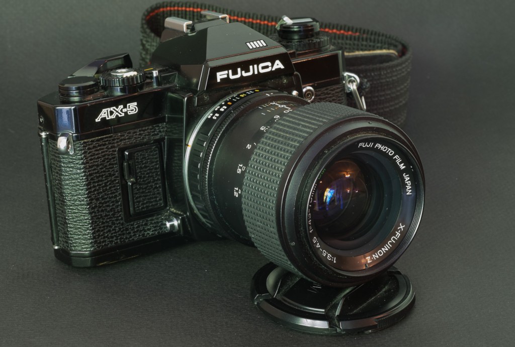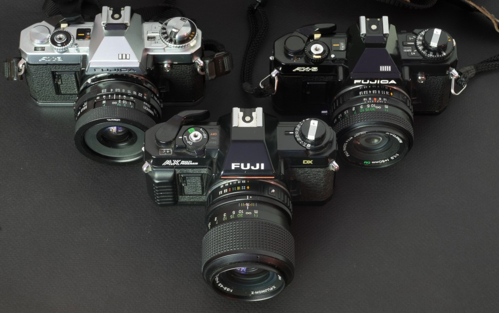 - Fujica AX-1 – if it was a car, we could say that it shares its platform (or chassis) with the other Fujica AX cameras. Designed for people with no interest in the technical aspects of photography, it offers a simplified set of controls, and only works in a fully automatic program exposure mode, with no manual or semi-manual override.