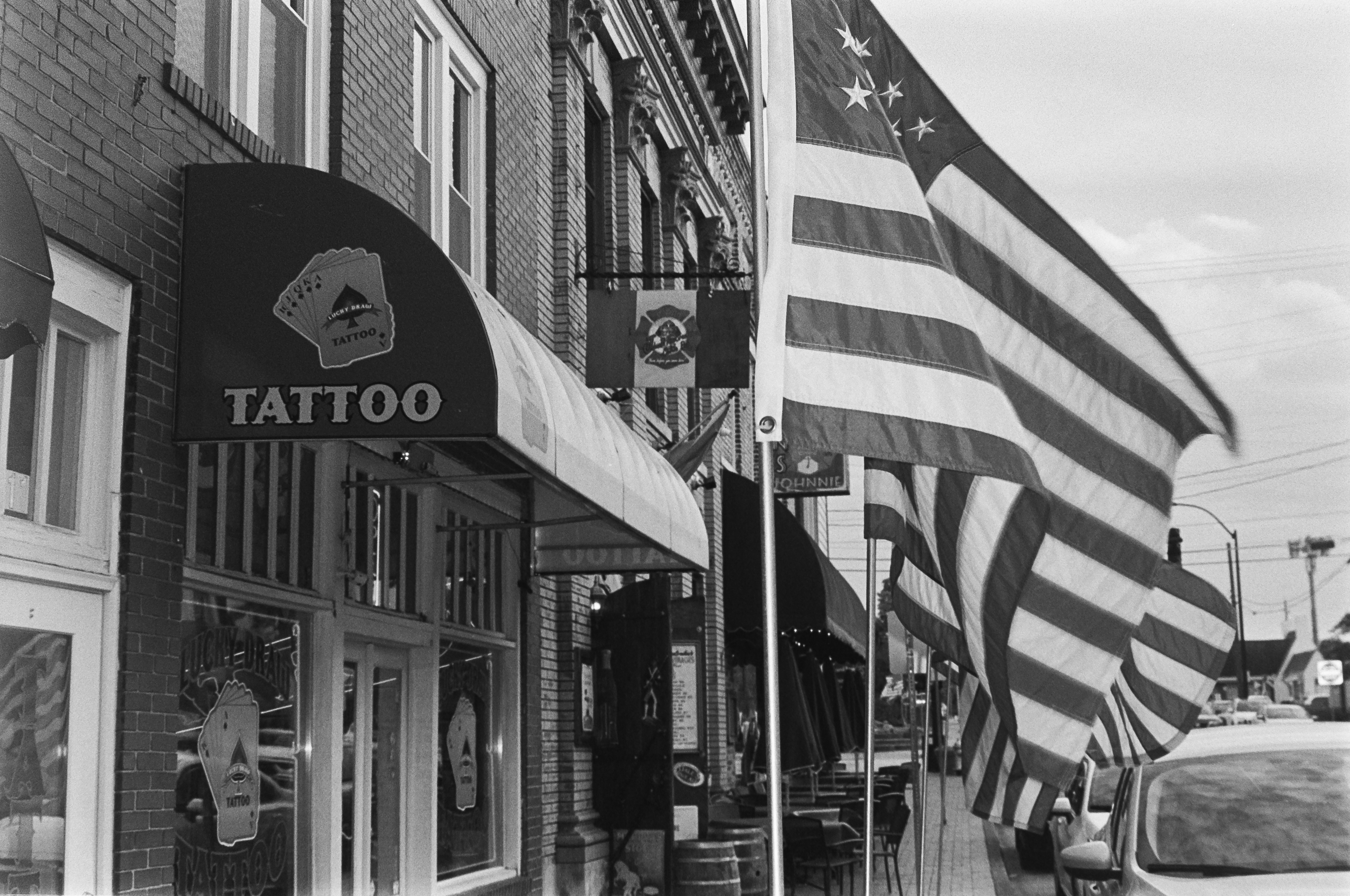 The biggest limitation of this camera is its zoom – or to be precise, its very narrow aperture, in particular at the long end. With a zoom opening at f/8 at the longest focal length, 400 ISO film really looks like a minimum, and at the end of my Marietta escapade, I wished I had loaded the camera with something faster than Ilford’s HP5 (on the Photura there is no way to override the DX coding and push film).