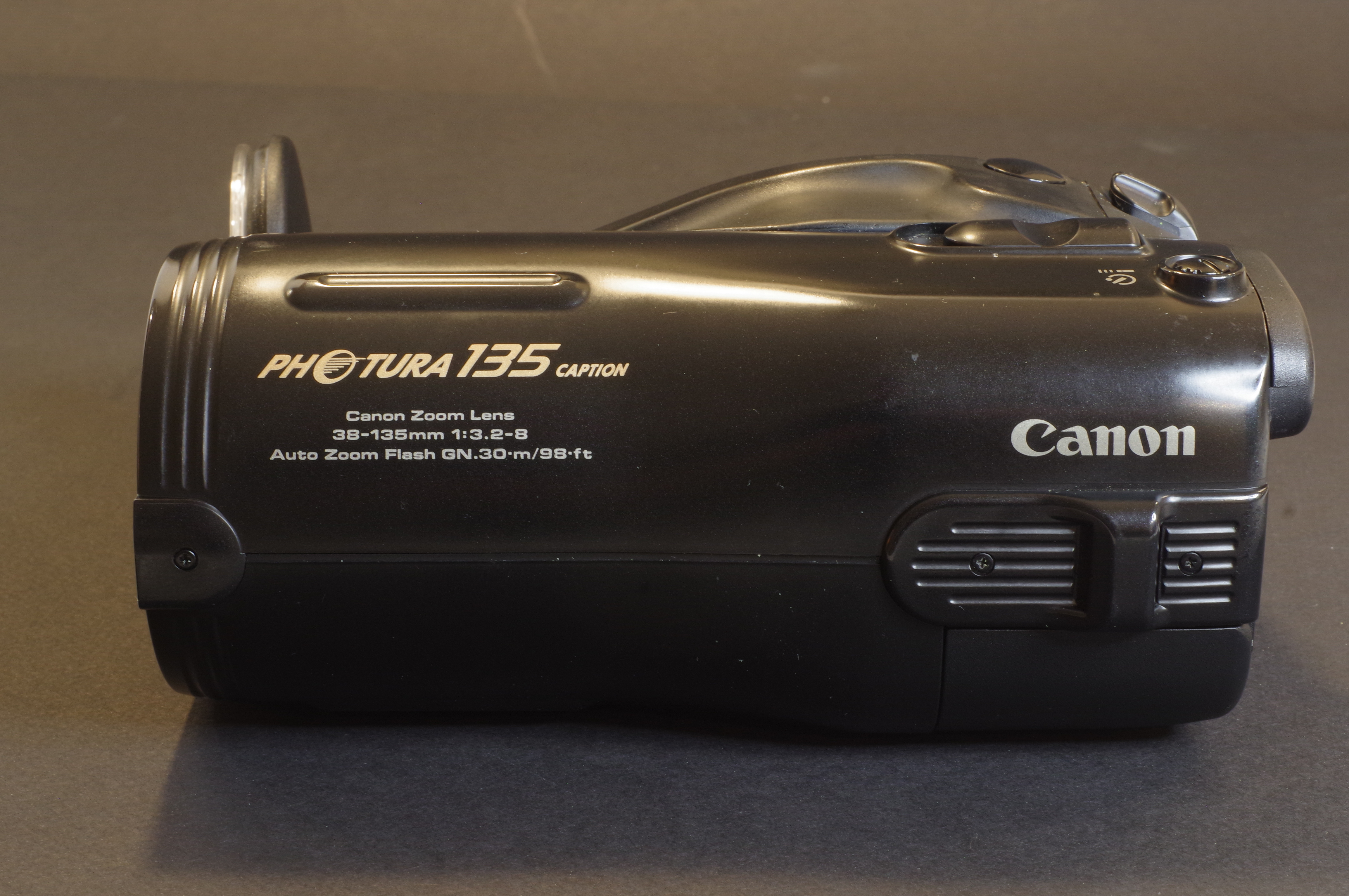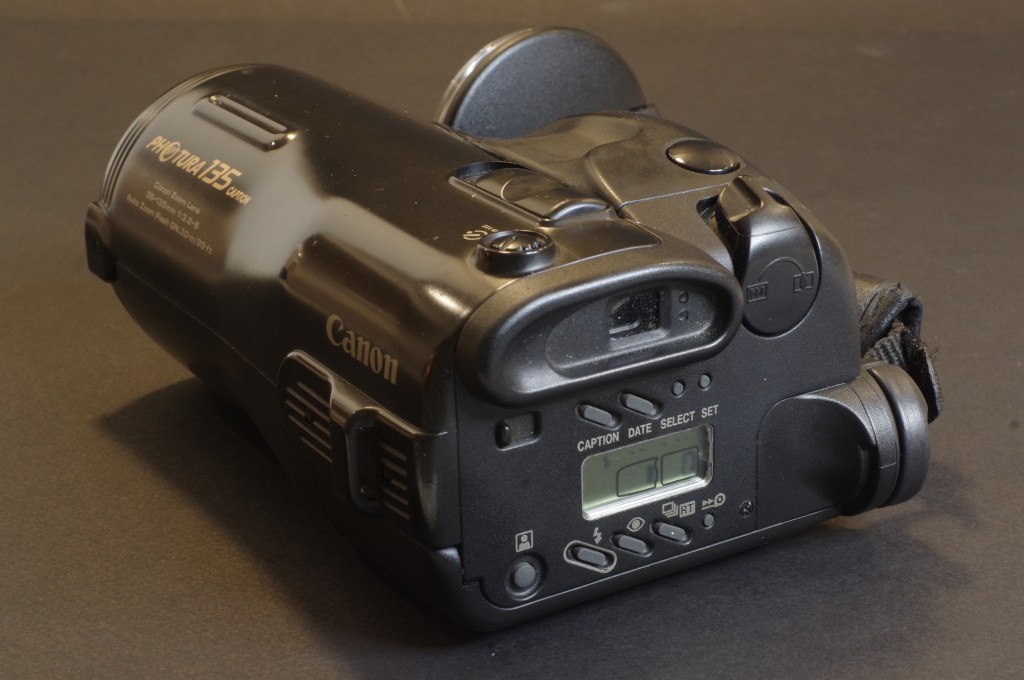 Canon created at least three different variants of the Photura 135, the “Base”, the “Caption” and the “Panorama”. Mine is a “Caption”. It can print the date or a choice of 5 messages on the negatives. Cool!