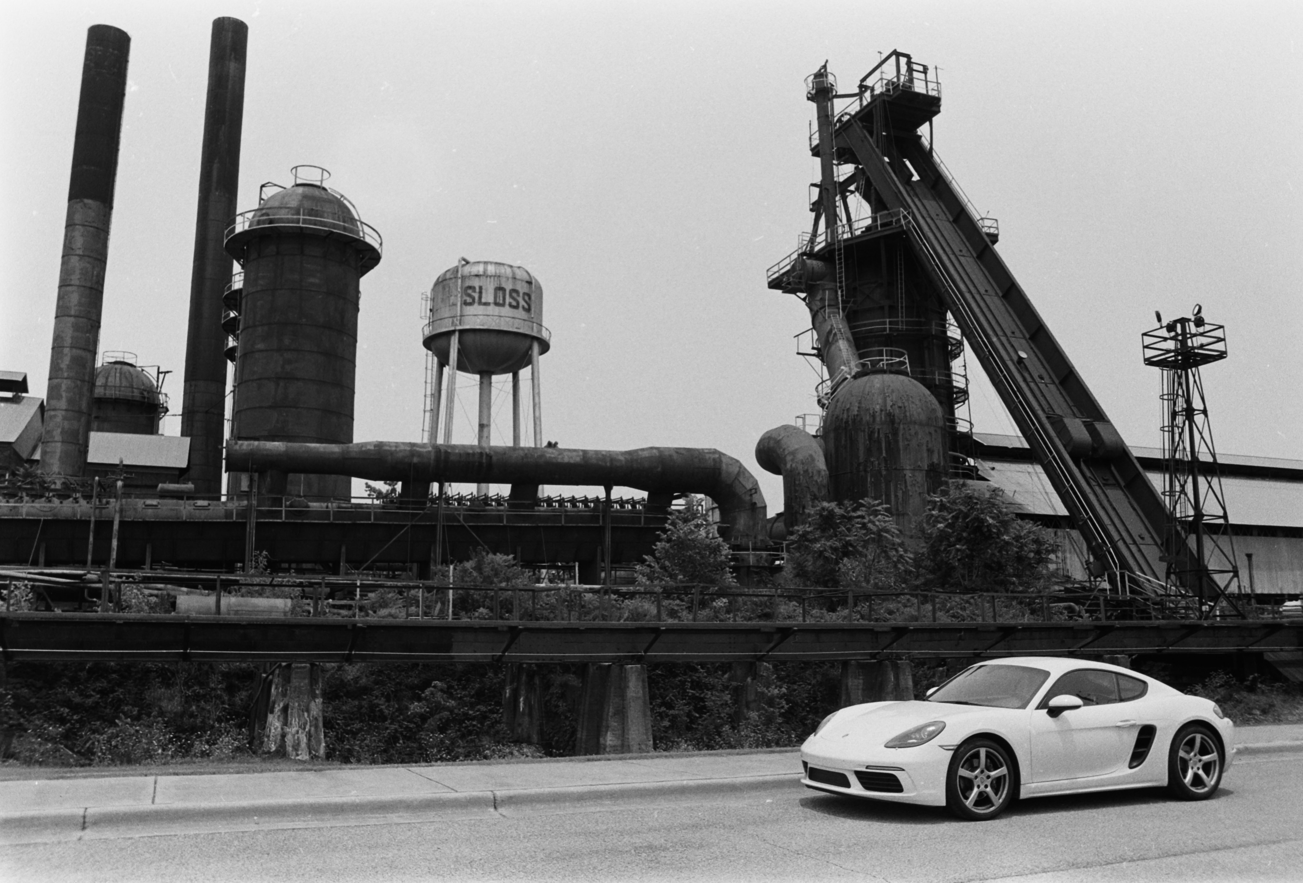 Sports car at the Sloss Furnaces. I found the contrast between the modern white car and the dark industrial ruins interesting. All pictures of the furnaces were shot on Ilford FP4 – Developed at 22 degrees C in Tetenal PARVOFIN. Negative shot with the JJC Film Digitizing adapter and inverted in Lightroom Mobile.