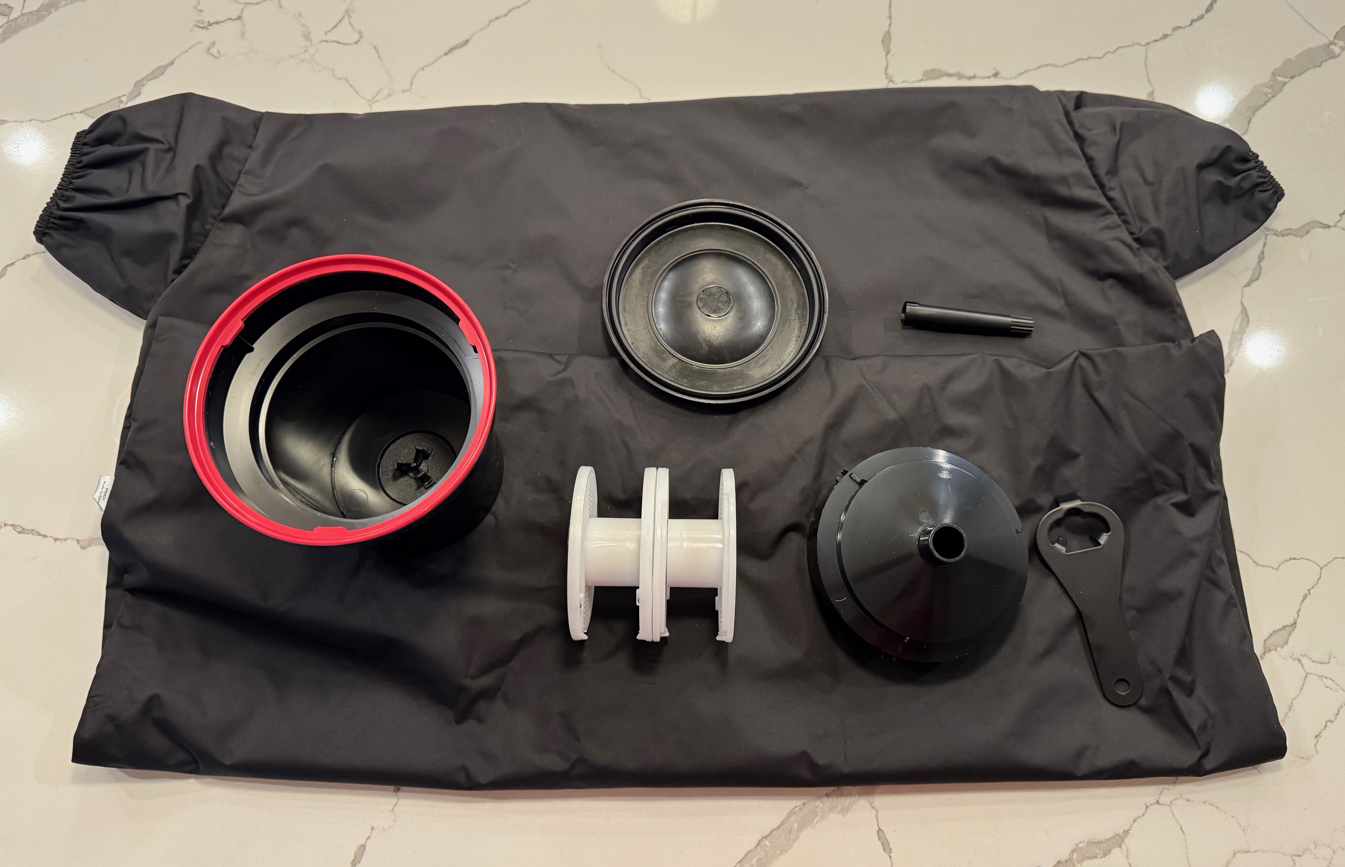 Everything can fit in a 20x15x10in plastic bin, including the chemicals