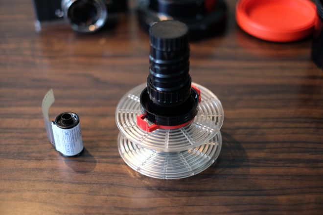 The Lomo Daylight Developing Tank – the film loader – notice the sprockets pushing the film to the reel.