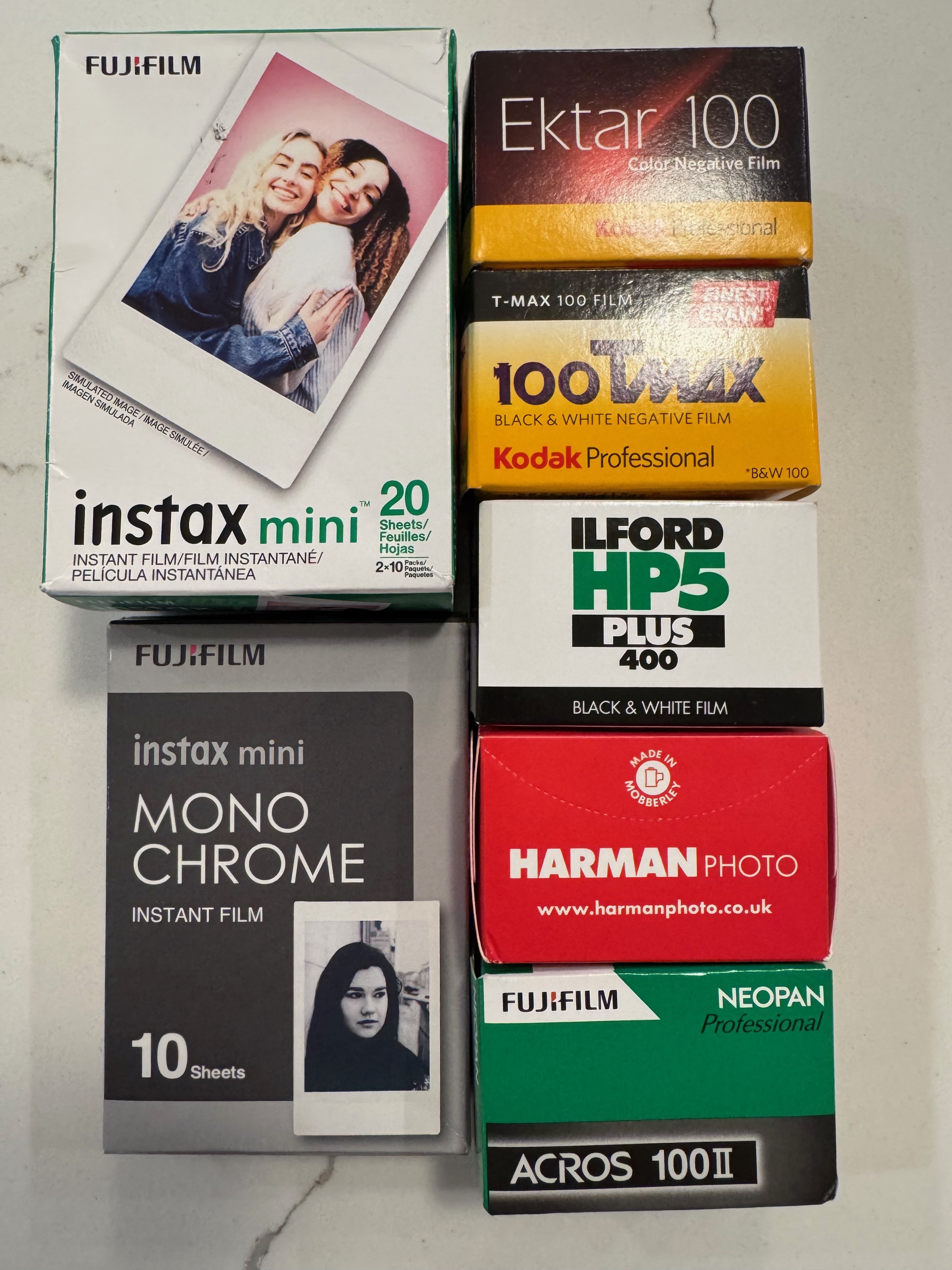 If you still enlarge and process your prints at home, you need a dark room, and plenty of space for the enlarger and the developing trays – but if you only process film, and immediately digitize it, you simply need a few square feet on the countertop of your kitchen. Once you’ve cleaned your equipment, it will fit in a 20x15x10in plastic bin, chemicals included.