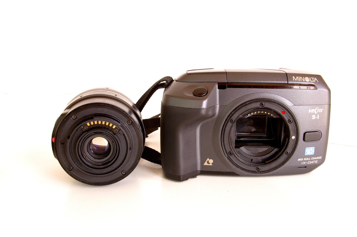 Launched in 1996, it was the only SLR system designed from scratch for the APS film format. It inherited the best features from the Minolta mid-range 35mm cameras of its time, and exploited the new functionalities of the APS format to its full advantage. Built around a new, specific and very modern mount, the Vectis cameras and lenses were far more compacts than conventional 35mm SLRs, and than the APS SLRs developed by Canon and Nikon.
