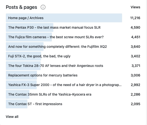 Approximately 52,000 of you visited Cameragx.com last year, for a total number of 69,000 page views. Those numbers have been fairly constant over the last few post-COVID years. Thank you.