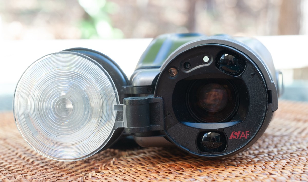 Minolta AF-C – the “shield” is open and the camera ready to shoot.