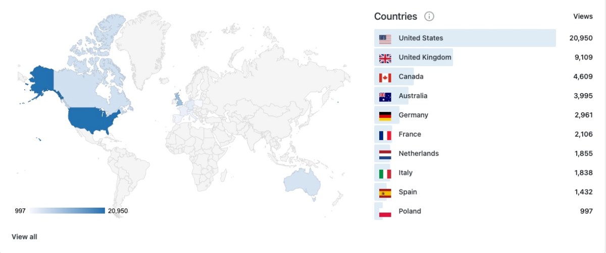 As can be expected (since this blog is written in English), traffic is originating primarily from English speaking countries.
