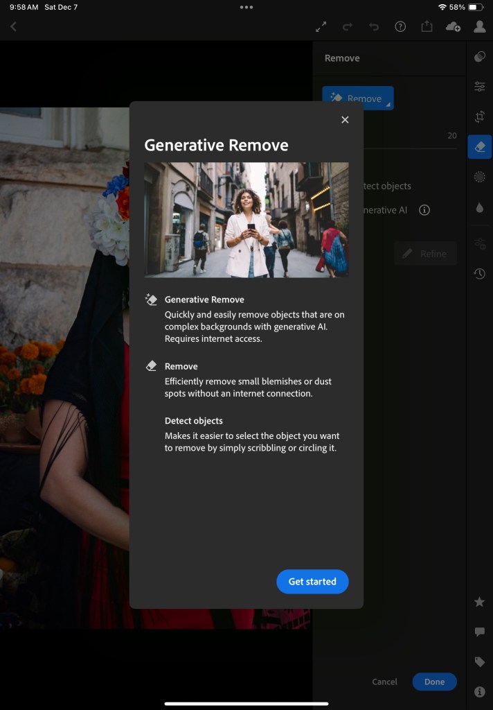 The upgrade is seamless. If you use Lightroom Mobile, you already have an Adobe ID (distinct from your Apple or Google app store IDs). Simply connect to the Adobe store, sign in with your Adobe ID, pick the photography plan you need, flash your credit card (it’s costing $119.99 if you pre-pay one year in advance), and you’re done. There is nothing to reinstall, nothing to configure. Within a few seconds, you will see your storage limit raised by an increment of 1TB in your mobile or Web apps.